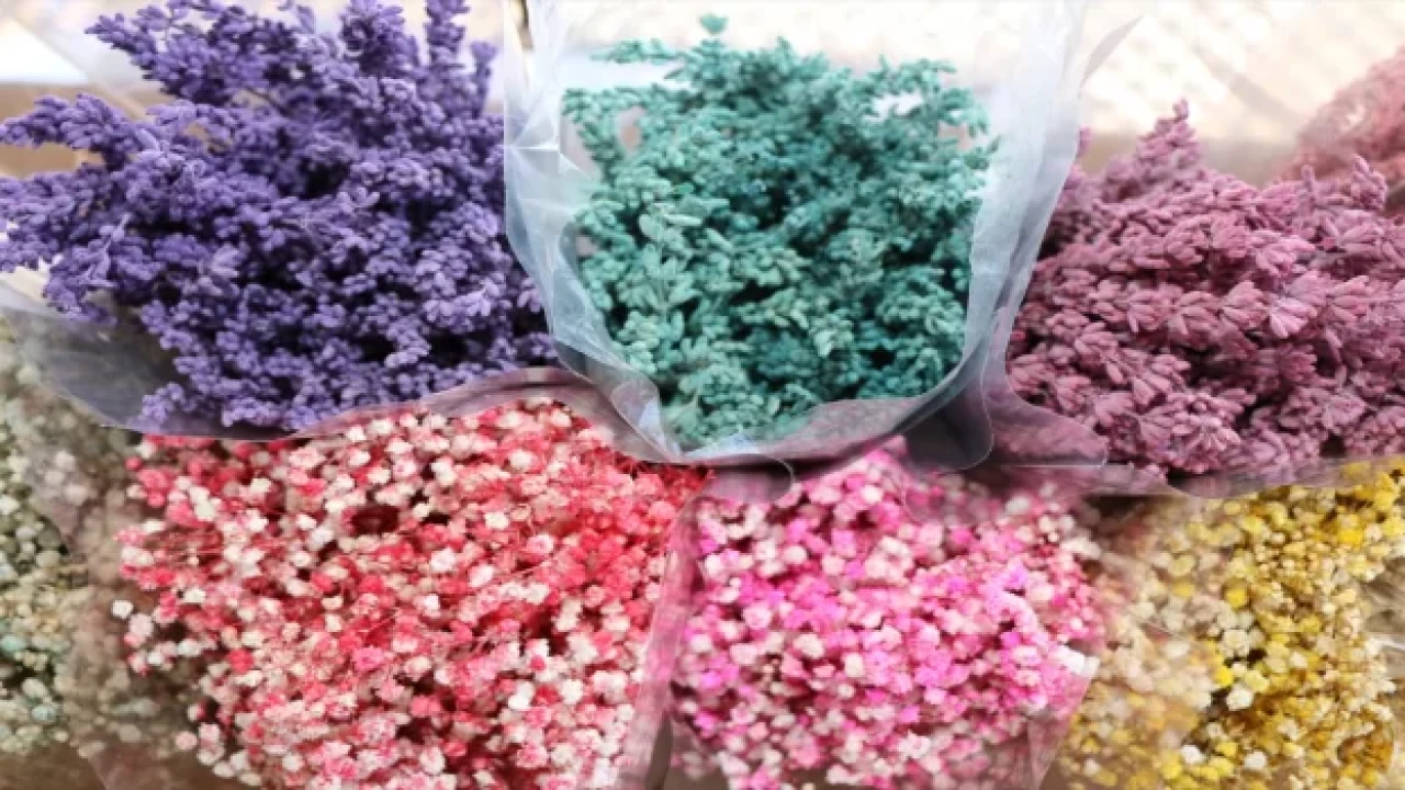 Lavanta, ortanca, deniz lavantası, buğday, yulaf, altınbaşak, mimoza bitkilerini de ürünleri arasına katan Kahveci, bitikleri renklendirerek üretime başladı.