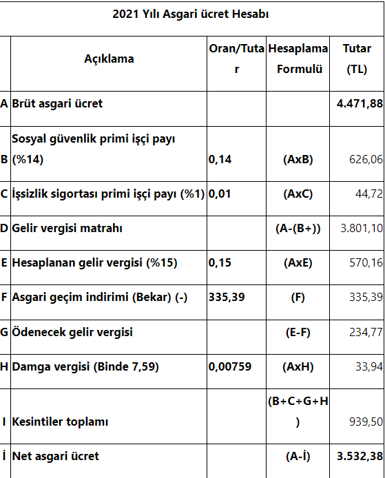 %25 artış oranıyla Brüt tutarı 4.471,88 Türk Lirası olan Asgari ücrete göre asgari ücret geliri elde eden bir ücretli AGİ ile birlikte 3.532,38 Türk Lirası ücret geliri elde edecektir. Hesaplama aşağıdaki gibi yapılacaktır.