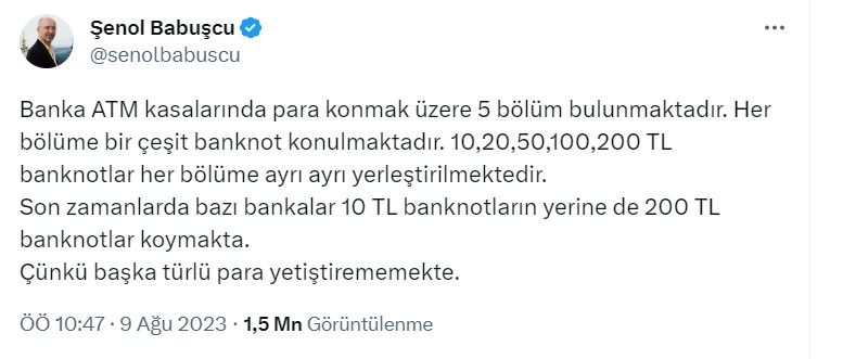 Enflasyon nedeniyle para basımının çoğalmasıyla birlikte son aylarda bankamatiklerden yeni üretilen paralar da çekilmeye başlandı. Babuşçu, milyonlarca vatandaşın fark etmediği bir detayı sosyal medya hesabından açıkladı.