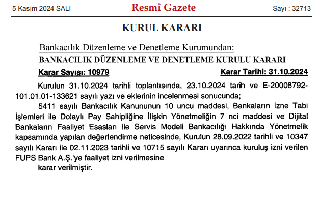 BDDK kararında, Colendi Bank A.Ş. için 5411 sayılı Bankacılık Kanununun 10’uncu maddesi ve dijital bankacılık yönetmeliğine atıfta bulunularak, kuruluş izninin ardından faaliyet izni verildiği belirtildi. Aynı şekilde, Ziraat Dinamik Banka A.Ş. ve FUPS Bank A.Ş.’nin de gerekli yasal süreçlerin tamamlanmasıyla birlikte faaliyete geçmelerine izin verildi.