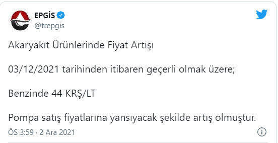 Muhalif. EKONOMİ Benzine yine zam geldi: "44 kuruş"
