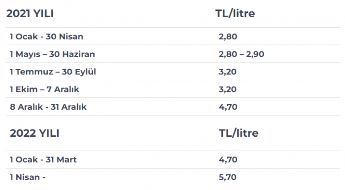 Ulusal Süt Konseyi'nin mart ayında açıkladığı çiğ süt tavsiye satış fiyatından bir kaç saat önce de Tarım ve Orman Bakanlığı, 20 kuruş olan çiğ süt destekleme primini 80 kuruş artırarak 1 TL'ye çıkardığını duyurmuştu.