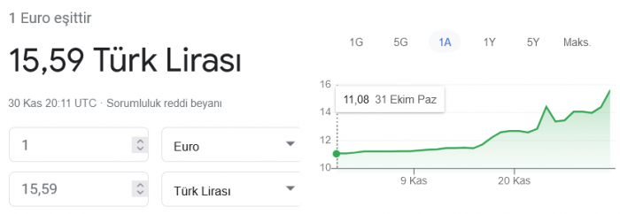 Euro/TL kuru da 15,59'a kadar yükseldi. Euro/TL'de rekor ise 15,16 olarak kaydedilmişti. Euro/TL ise şu anda 15,23 seviyesinden işlem görüyor.