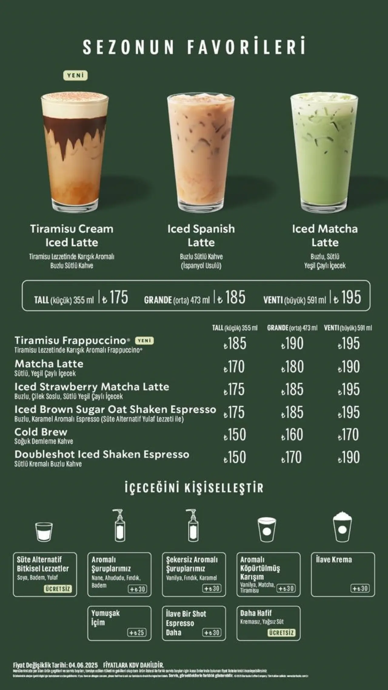 Starbucks, bu fiyat artışından önce son düzenlemeyi Ocak 2025’te gerçekleştirmişti. Yapılan yeni zammın ardından, Türkiye genelinde Starbucks’ın fiyatları son bir yıl içinde yüzde 50 oranında arttı. Mağaza zinciri, Türkiye’deki fiyat artışlarıyla birlikte, global maliyetlerin etkisini de gözler önüne seriyor.
