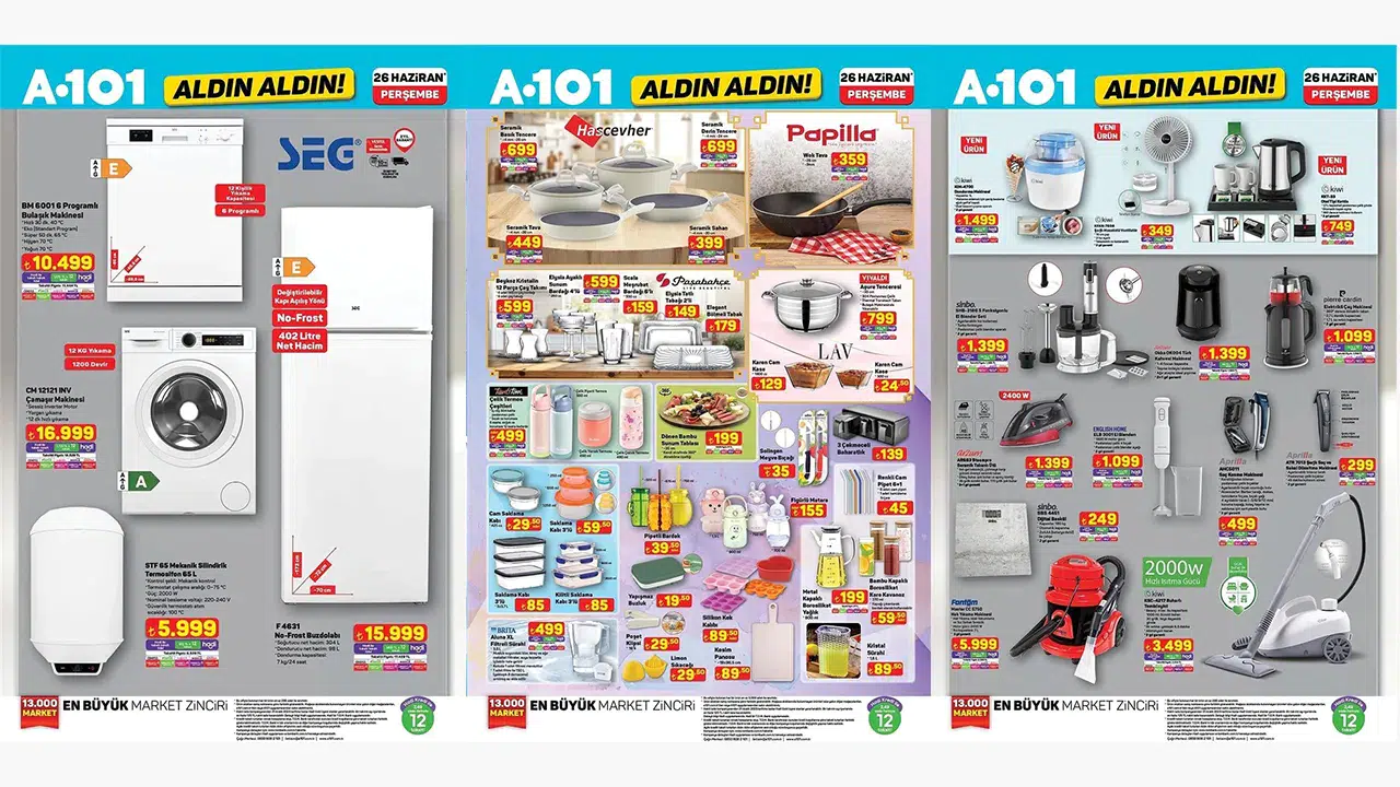 A101 marketleri, 26 Haziran 2025 Perşembe günü termosifon da dahil olmak üzere pek çok indirimli ürünü raflarına taşıyacak. Müşterilerine sunacağı bu kampanyalı ürünlerin fiyatları ve detayları merakla bekleniyor. A101’in bu tarihli aktüel ürünler kataloğu, alışveriş severler için heyecan yaratıyor.