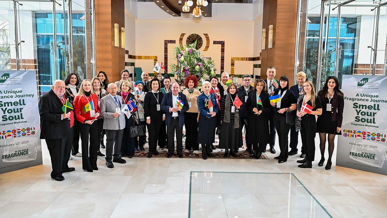 Karşılama kokteyli ile esans fabrikasını gezen diplomat ve eşlerine; MG International Kurucusu ve Onursal Başkanı Mişel Gülçiçek, dsm-firmenich Türkiye Başkanı, MG International CEO’su Aslan Gülçiçek, MG International COO’su Sibel Gülçiçek Elkaza, AR-GE Başkanı Ahmet Baydar ve Kurumsal İletişim Direktörü Duygu Beşbıçak eşlik etti.