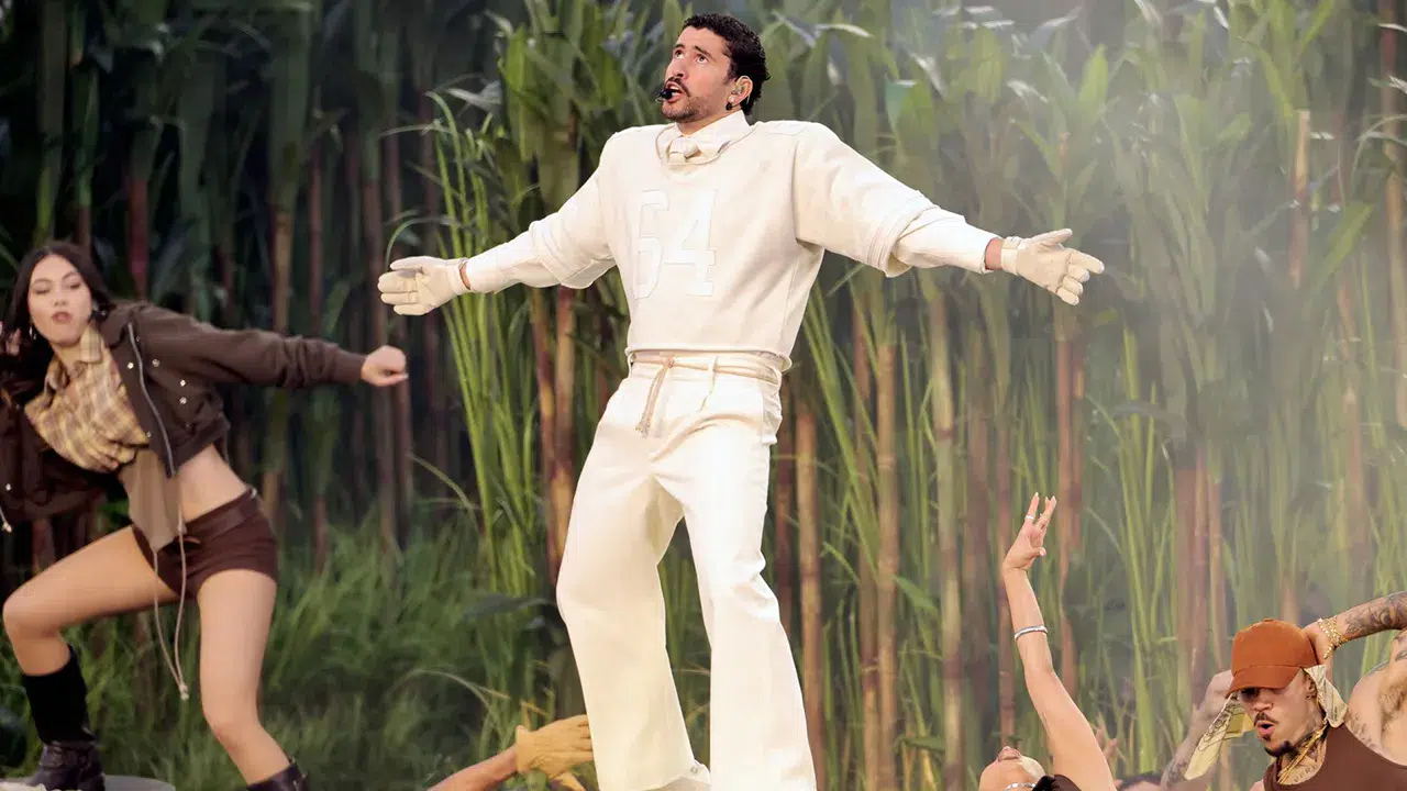 Geçtiğimiz hafta Grammy Ödülleri'nde Schiaparelli imzalı haute couture bir takımla gördüğümüz Bad Bunny, Super Bowl sahnesinde keskin bir dönüşle Zara’yı tercih etti. Uzun süredir birlikte çalıştığı stilistleri Storm Pablo ve Marvin Douglas Linares tarafından kurgulanan görünüm, baştan aşağı beyaz, minimalist ve fütüristik çizgiler taşıyordu.