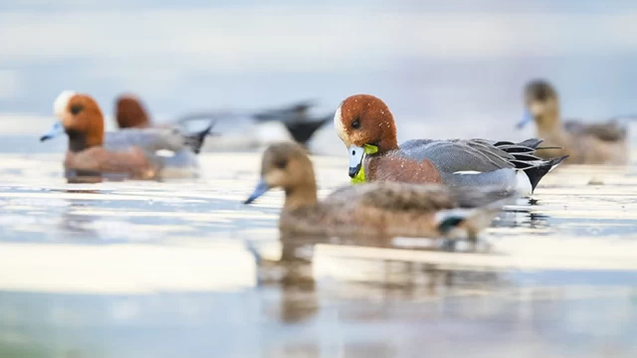 Yalova Hersek Lagünü kıyısındaki Fiyu ördekleri, deniz yosunlarıyla beslenirken görüntülendi. Fiyu ördeği erkeklerinin, kızıl kahverengi kafası dikkat çekerken dişilerinin ise düz ve kırçıllı tüyleri göze çarpıyor.