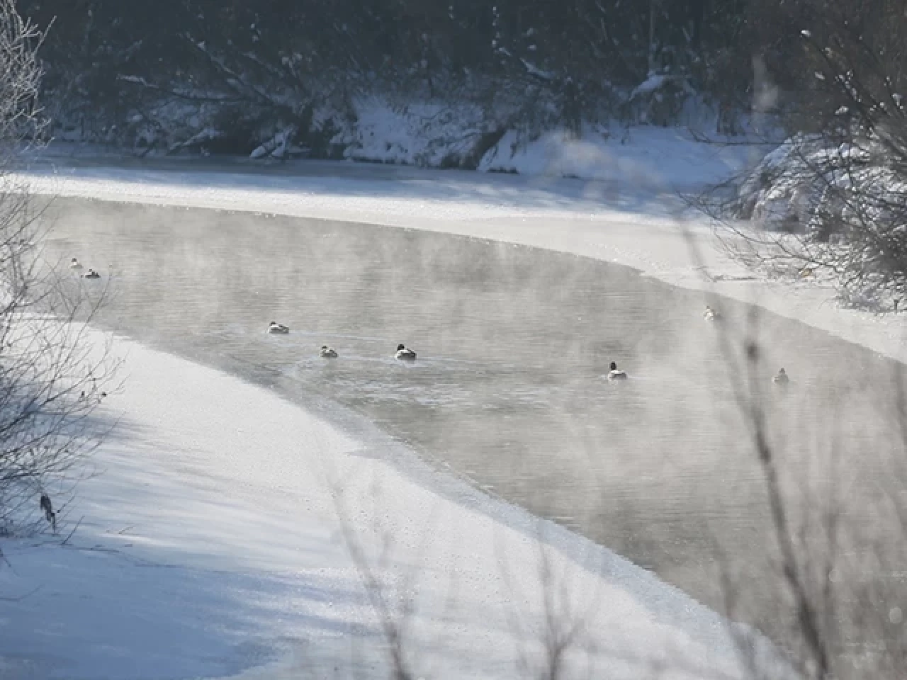 Kars'ta etkili olan soğuk hava nedeniyle Kars Çayı'nın bir bölümü buzla kaplanırken Kafkas Üniversitesi yerleşkesinden geçen çayın buz tutmayan bölümlerinde Yeşilbaş Ördekler yiyecek ararken görüntülendi.