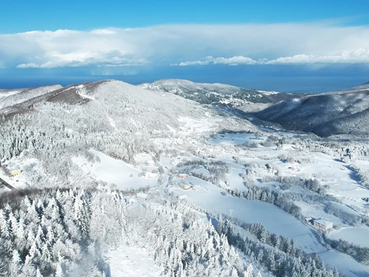 Kastamonu'da yüksek rakımlı noktalarda kar yağışının oluşturduğu güzel manzara havadan görüntülendi. Beyaza bürünen Kastamonu ormanlarındaki manzaralar dron görüntülerine yansıdı.