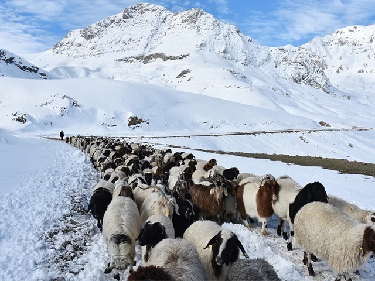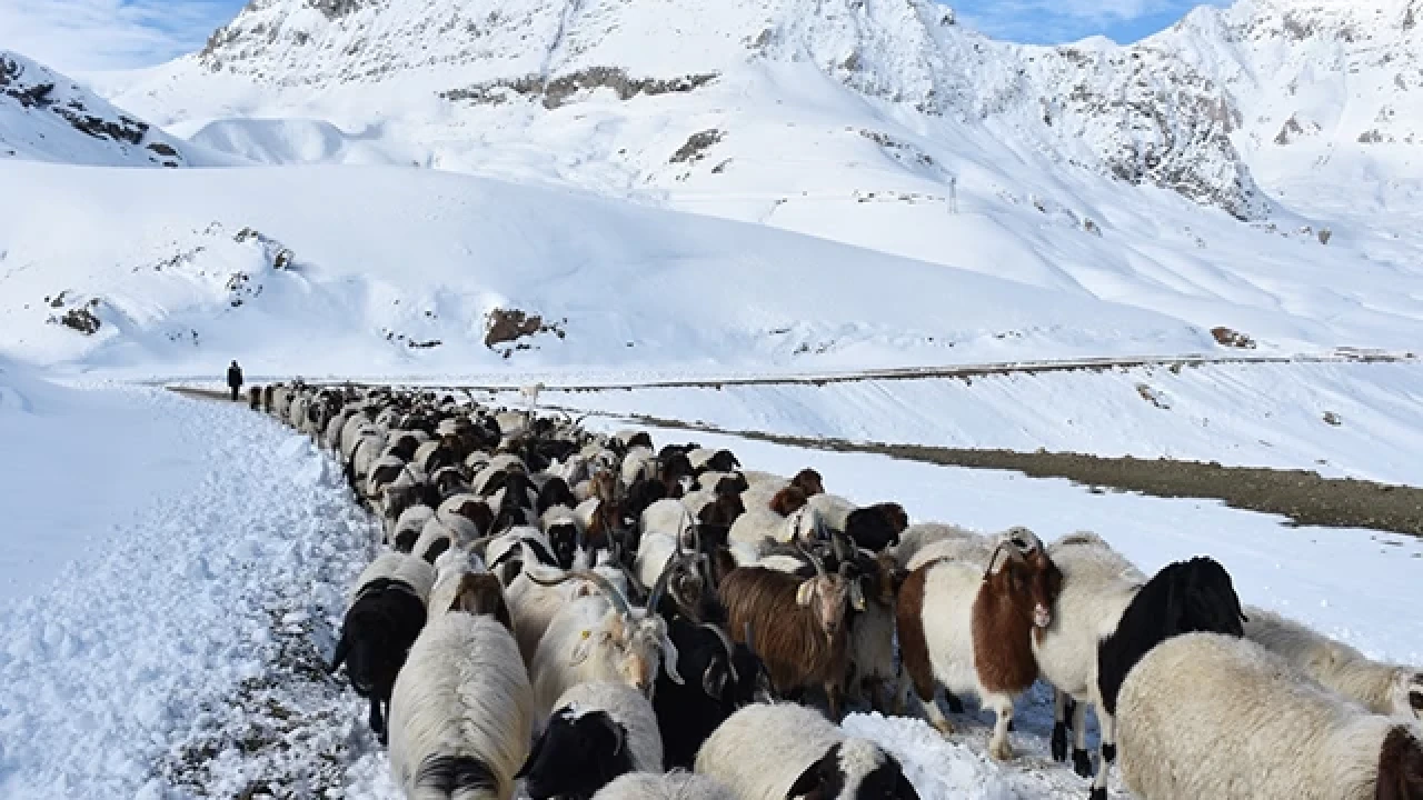 Yaklaşık yarım metre karın bulunduğu bölgeye yönlendirilen karla mücadele ekiplerinin çalışması sonucu yolun açılmasıyla mezrada kalan besiciler de küçükbaş hayvanlarıyla Hakkari'ye doğru yola çıktı.