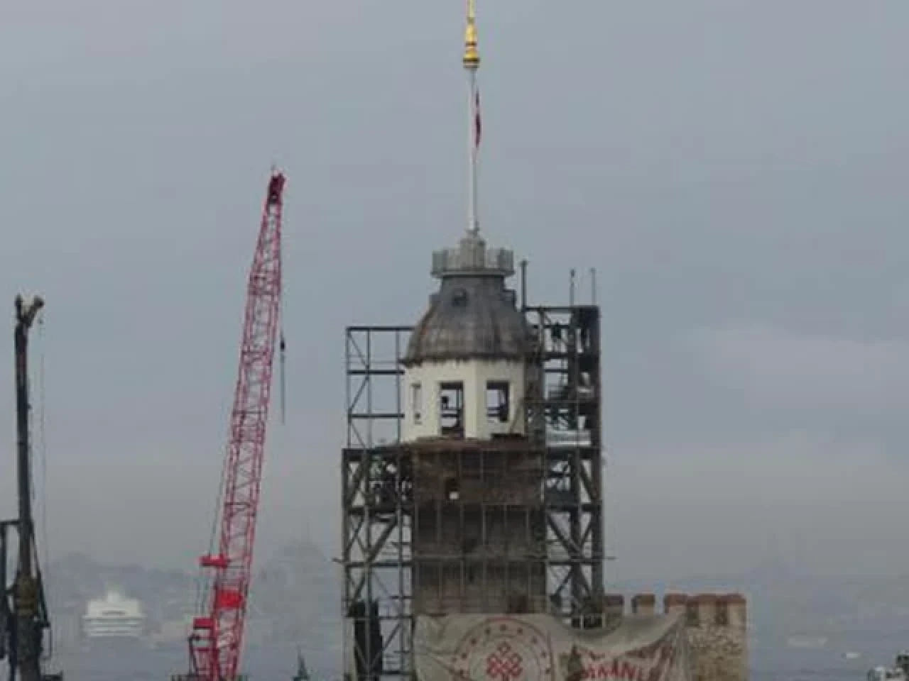 İstanbul’un en önemli simgelerinden biri olan Kız Kulesi'nde iskelenin üst kısmının sökülmesiyle kubbe katı ortaya çıktı.