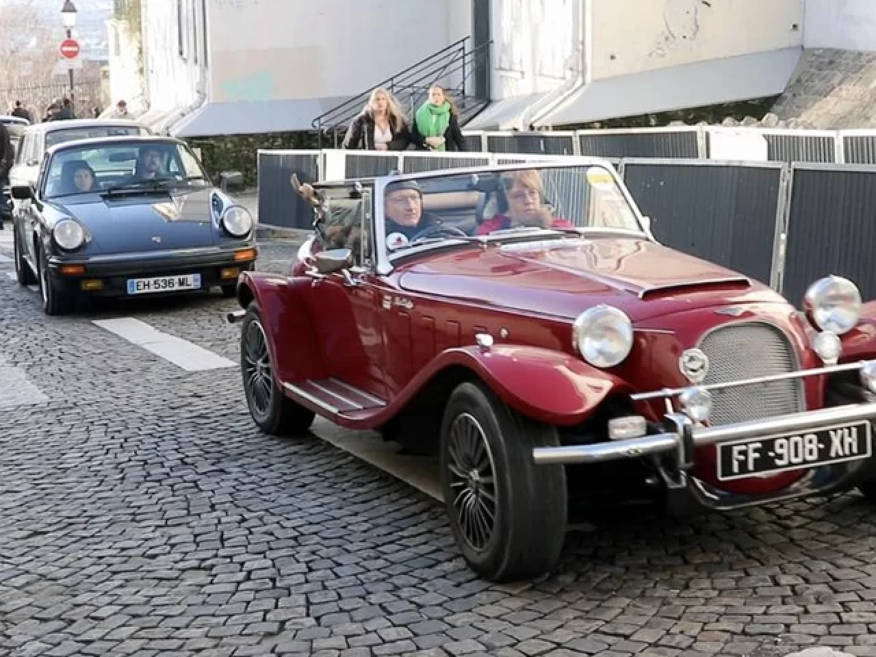 Paris'in ressamlar tepesi olarak bilinen Montmartre'ye doğru yola çıkan araçlar, burada bando çalan ekipler tarafından coşkuyla karşılandı.