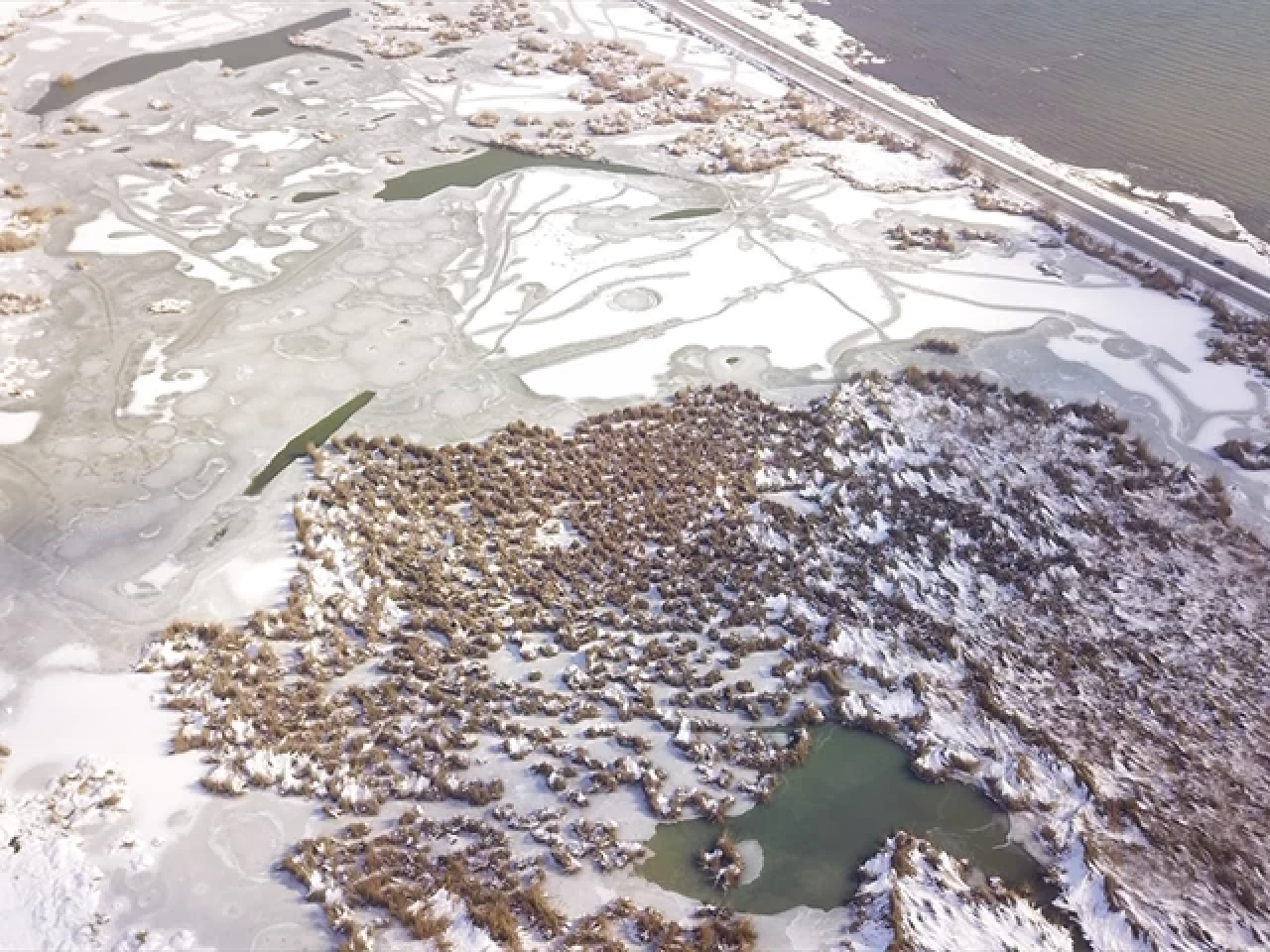 Muhalif. Galeriler YAŞAM Yüzeyi buzla kaplanan Ahlat'taki "Kuş Cenneti" dronla görüntülendi