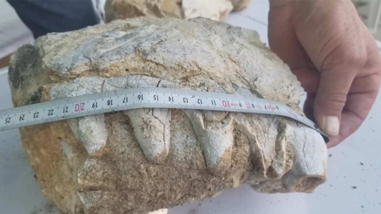 Taşı bir süre yerinde incelediklerini ve daha sonra koruma altına aldıklarını belirten baba Taşkın Ercan, “Taşı yerinde bir süre inceledik. Eski çağlardan mamut ya da bir file ait olabileceğini tahmin ediyoruz. Üzerinde dişler olan fosil, 25 santimetre uzunluğunda ve 23 santimetre yüksekliğinde, bir dişinin uzunluğu ise yaklaşık 16 santimetre civarında. Bulduğumuz fosili koruma altına aldık” diye konuştu.