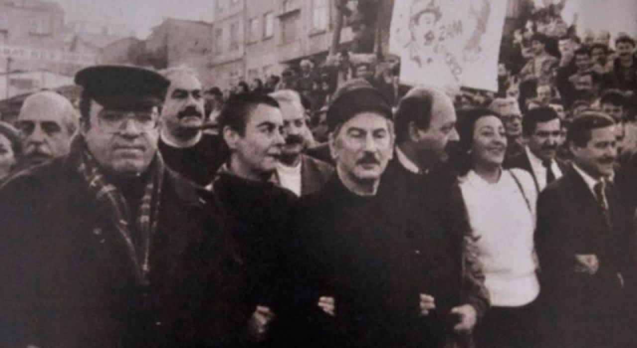 Farklı alanlarda Türkiye'ye damga vuran isimler 31 yıl önceki Büyük Madenci Yürüyüşü'nde bir arada olduğu tarihi fotoğraf ortaya çıktı. Yürüyüşte; Fatma Girik, Ali Sirmen, İlhan Selçuk ve Uğur Mumcu kol kola görülüyor.