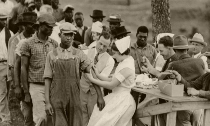 Benzer deneyler Tuskegee bölgesinde 1932-1972'de 40 yıl boyunca yapıldı. Katılımcılar bölgede mevsimlik tarım işçisi olarak çalışan siyahlardı. Halihazırda frengiye yakalanmış 399 siyah erkekte hastalığın ilerlemesi izlendi. O dönemde penisilin henüz hastalığın tedavisinde kullanılmaya başlamamıştı.