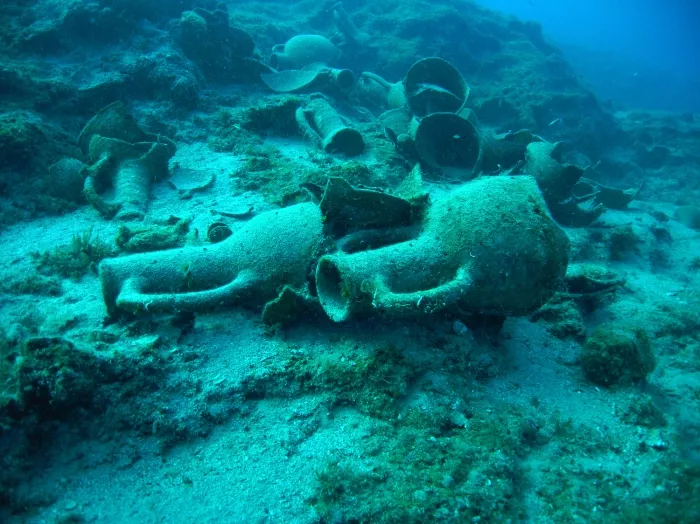 Su altındaki 28-38 metrelik yamaçta 3 yığın halinde keşfedilen batıkta, ticari ürünlerin taşınmasında kullanılan amforalara (testi) rastlandı.