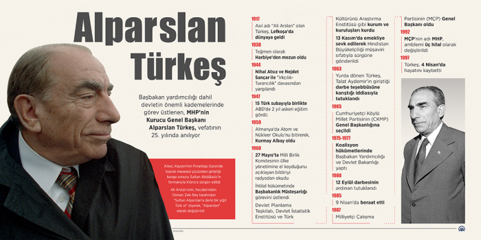 Başbakan yardımcılığı dahil devletin önemli kademelerinde görev üstlenen, MHP'nin Kurucu Genel Başkanı Alparslan Türkeş, vefatının 25. yılında anılıyor.