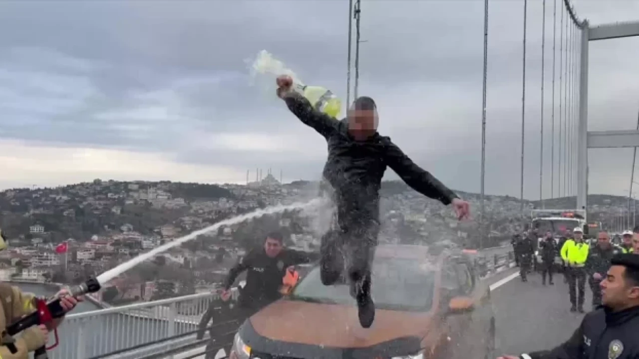 15 Temmuz Şehitler Köprüsü'nde Anadolu Yakası'ndan Avrupa Yakasına geçiş istikametinde ilerleyen bir otomobil sürücüsü, köprünün ortasında otomobilini durdurup tavanına çıktı. Şahıs elinde bulunan şişe içerisindeki benzin benzeri maddeyi kendi üzerine ve otomobilin üzerine döktü. Olay yerine polis, itfaiye ve sağlık ekipleri sevk edildi. Polis, otomobil üzerindeki şahsı ikna etmek için çaba sarf etse de şahıs elindeki şişeyi bırakıp aracın üzerinden inmeye ikna olmadı.