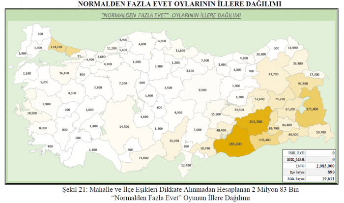 2017 Referandumunda Türkiye Genelinde hesaplanan Normalden Fazla Evet oy sayısı 2 milyondan fazladır.