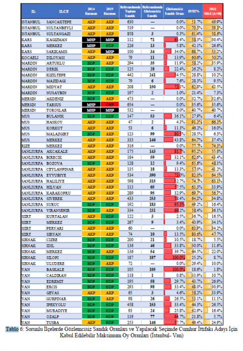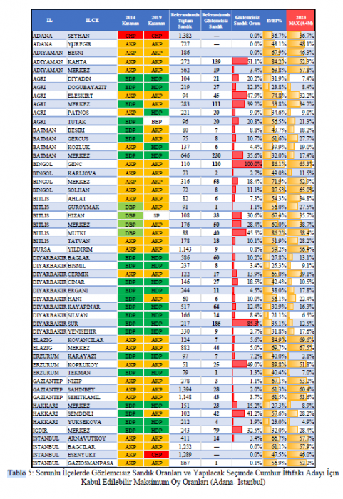 Cumhurbaşkanlığı Seçiminde “Etkin Sandık Güvenliği” Gereken İlçeler Çalışmasında yer verilen tespitlerden bazıları şöyle:
