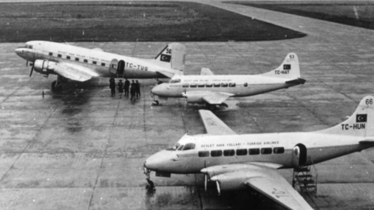 THY'nin sosyal medya hesabından yapılan ve 1955 yılında çekilen siyah beyaz eski tip yolcu uçaklarının bulunduğu fotoğraflı paylaşımda, "1955'te çekilen bu fotoğraf siyah beyaz olabilir ama biz hala 20'lerimizdeki kadar genç hissediyoruz. #20liyaslarchallenge" ifadelerine yer verildi.