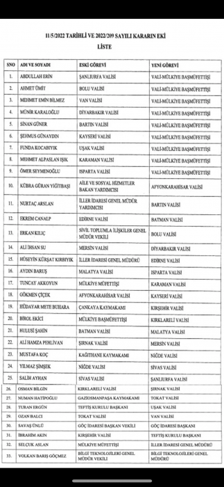 Muhalif. GÜNDEM 9 vali görevden alındı, 20 ilin valisi değişti