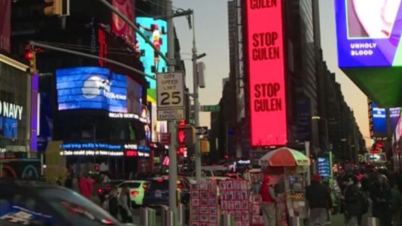 ABD'de New York kentinde, FETÖ elebaşı Fetullah Gülen'in karanlık yüzü hakkında ilan yayınlandı.