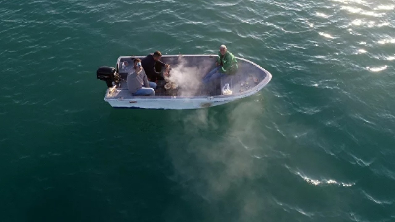 Mesire alanlarında mangal yakma yasağı devam ederken, 3 arkadaşın tekneyle Seyhan Baraj Gölü üzerinde mangal yakması görenleri şaşırttı.
