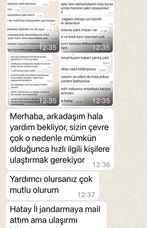 Antakya’dan pek çok adrese mesajlar gönderilerek yardım çağrıları yapılıyor.