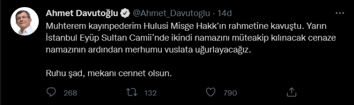 Gelecek Partisi Lideri Ahmet Davutoğlu, kayınpederi Hulusi Misge yaşamını yitirdi.