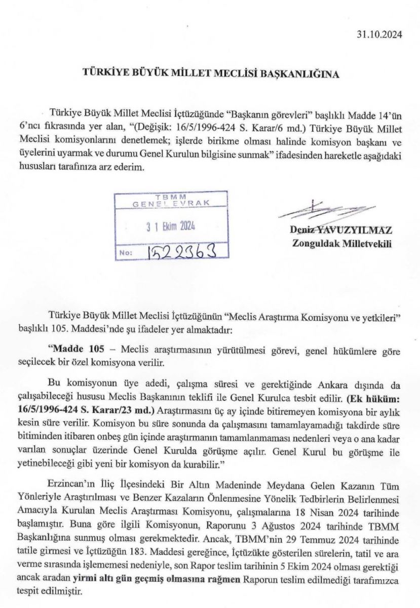 “İliç Faciası Meclis Araştırma Komisyonu raporunun meclis başkanlığına sunulmuş olması gereken son tarihin üzerinden 26 gün geçti.