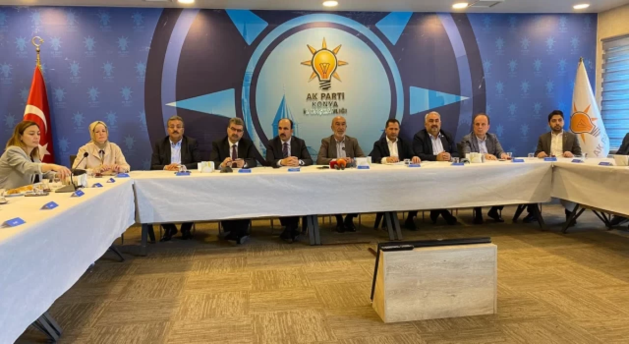 AK Parti Konya İl Başkanı Hasan Angı, milletvekili adayları, Konya Büyükşehir Belediye Başkanı Uğur İbrahim Altay, merkez ilçe belediye başkanları ve teşkilat mensupları, il başkanlık binasında gazetecilerle bir araya geldi.