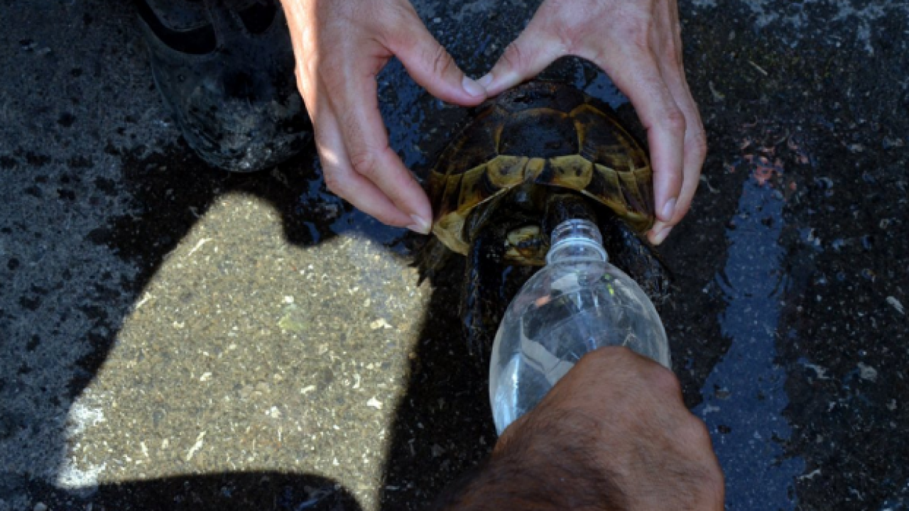 Doğa Koruma ve Milli Parklar Genel Müdürlüğü ekipleri, söndürme çalışmalarının ardından soğutma çalışmaları sırasında ağaç kovuğundaki kaplumbağayı fark etti. Ekipler, kaplumbağayı bulunduğu yerden çıkarıp, pet şişe kapağında su içirdi. Görevlilerin yaptığı kontrolde, kaplumbağanın alevler ve dumandan etkilenmediği belirlendi. Ekipler, tamamen küle dönen alanda mucize eseri kurtulan kaplumbağayı güvenli alana götürüp, doğaya bıraktı.