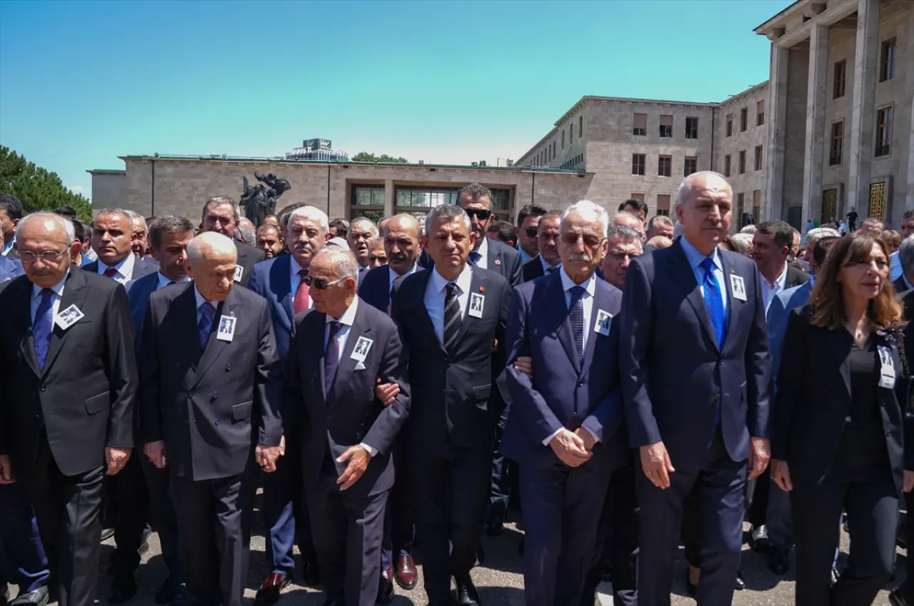 Törenin en dikkat çeken anlarından biri, MHP Genel Başkanı Devlet Bahçeli ile eski CHP Genel Başkanı Hikmet Çetin’in el ele yürüdüğü anlar oldu. İkilinin bu görüntüsü, siyasi nezaketin ve ortak geçmişe duyulan saygının sembolü olarak yorumlandı.