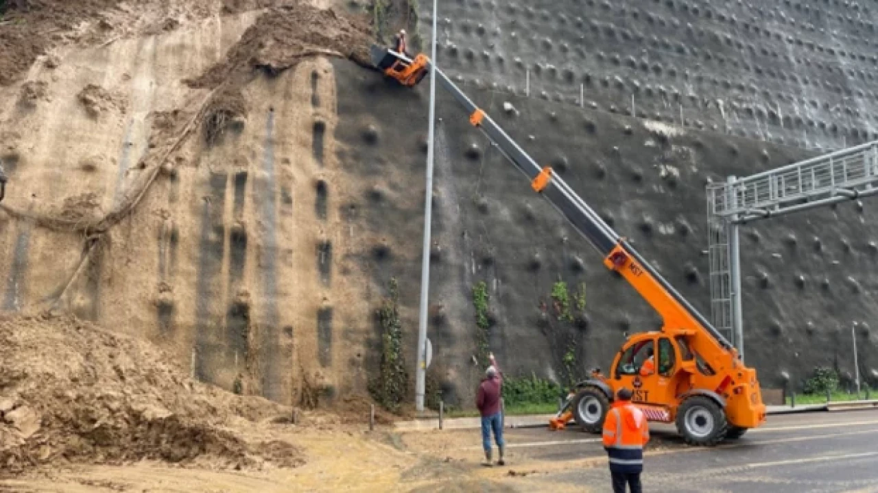 Anadolu Otoyolu Bolu Dağı Tüneli'nin yaklaşık 200 metre dışında, İstanbul istikametine doğru yolun sağında toprak kayması meydana geldi.