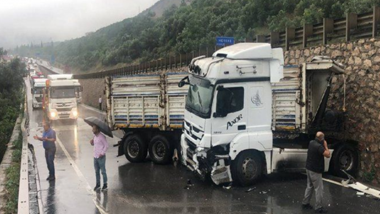 Ankara istikametine doğru D-100 Karayolu’nda TIR'ın su birikintisi sebebiyle yavaşlayan otomobil ve kamyonete çarpması sonucu yol trafiğe kapandı.