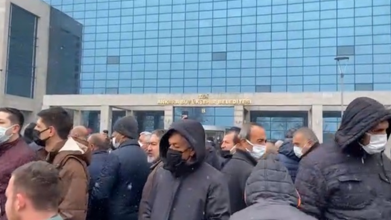 Ankara’da akaryakıt zamları nedeniyle kontak kapatan özel halk otobüslerinin şoförleri Büyükşehir Belediye Binası önünde toplanarak eylem yaptı.