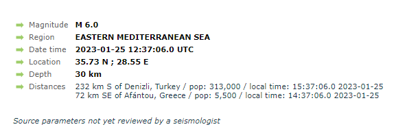 Avrupa Sismoloji Merkezi'nin verilerine göre depremin büyüklüğü 6.0 olarak ölçülmüştü.