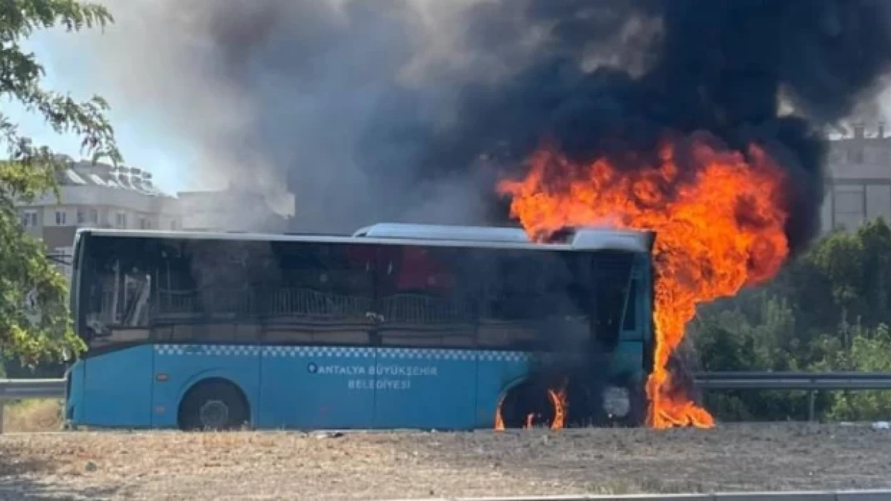 Antalya'da seyir halindeki belediye otobüsü alev aldı