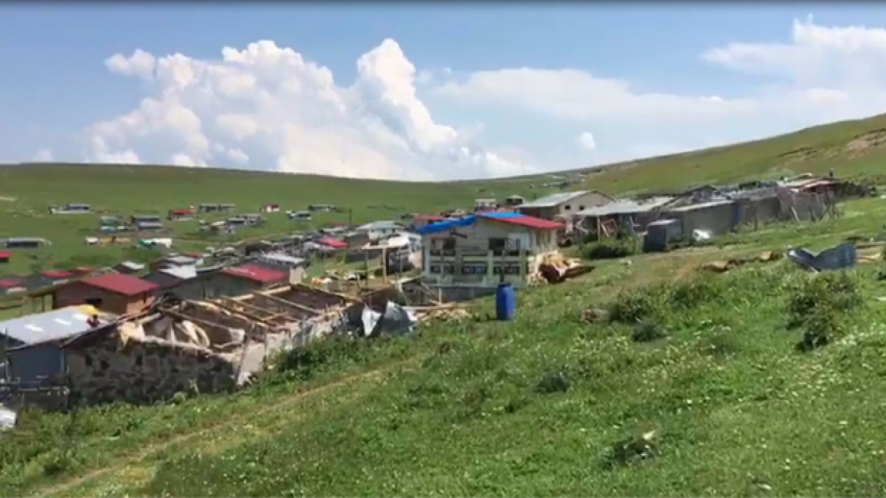 Hortum sonrası yaşan dolu nedeniyle köyde yeşil alanlar beyaza büründü. Enerji nakil hatları, ev ile eklentilerinde hasara neden olan hortum anları da cep telefonu kamerasınca kaydedildi.