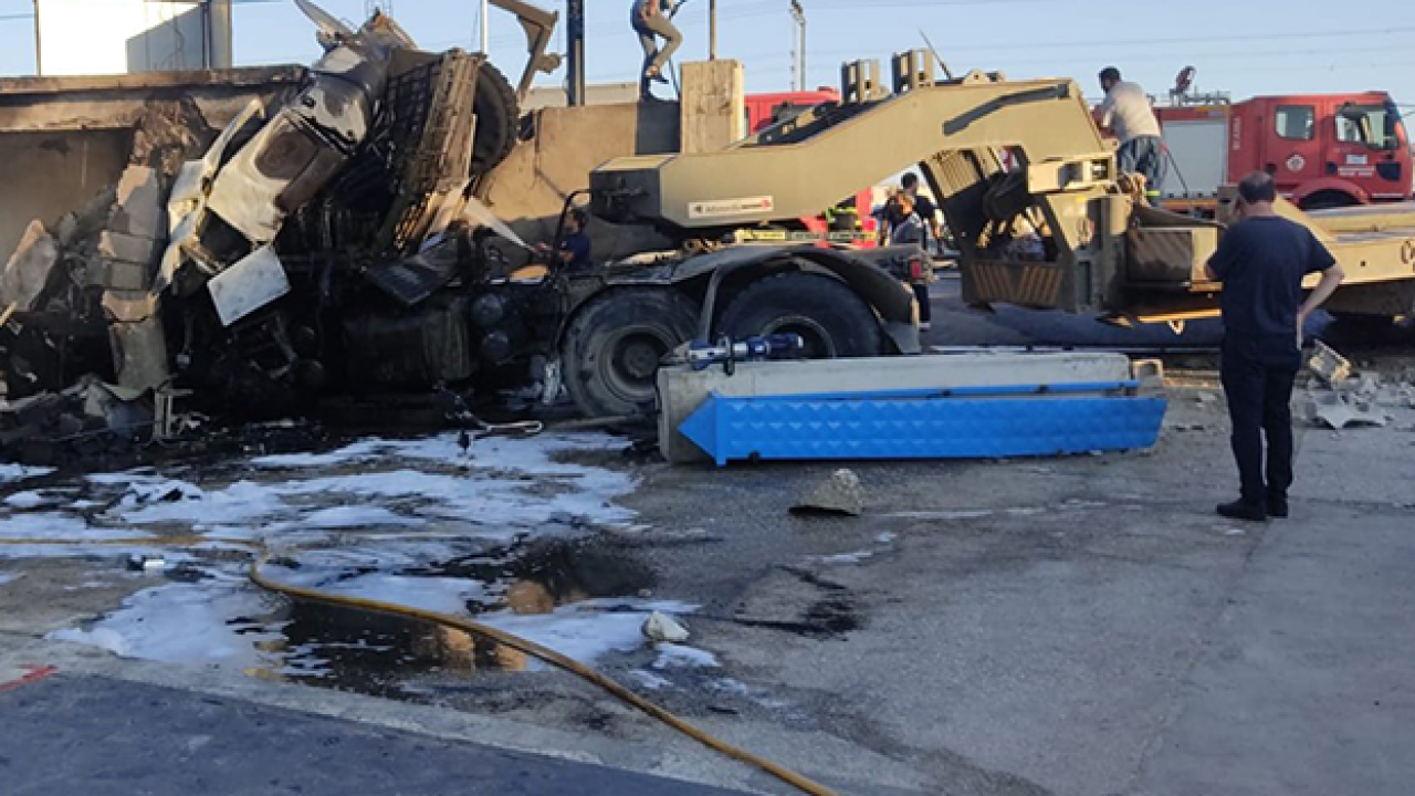 Hatay’ın Kırıkhan ilçesinde askeri araç bir fabrikanın duvarına çarptıktan sonra alev aldı. Kazada 2 asker şehit oldu.