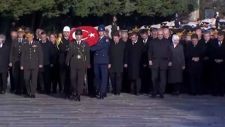 Törene Cumhurbaşkanı Recep Tayyip Erdoğan'ın yanı sıra Türkiye Büyük Millet Meclisi Başkanı Numan Kurtulmuş, Cumhurbaşkanı Yardımcısı Cevdet Yılmaz, CHP Genel Başkanı Özgür Özel, MHP Genel Başkanı Devlet Bahçeli, İYİ Parti Genel Başkanı Müsavat Dervişoğlu, bakanlar, Genelkurmay Başkanı Orgeneral Metin Gürak, kuvvet komutanları, yüksek yargı üyeleri ve askeri personel katıldı. Cumhurbaşkanı Erdoğan ve beraberindekiler, Aslanlı Yol'dan yürüyerek, Atatürk'ün mozolesine geldi. Cumhurbaşkanı Erdoğan, üzerinde ay yıldız bulunan çelengi Atatürk'ün mozolesine bıraktıktan sonra saygı duruşunda bulunularak, İstiklal Marşı okundu.