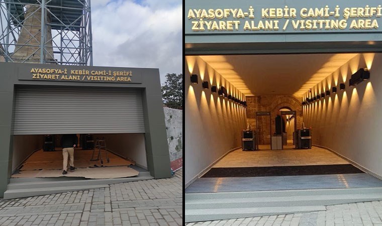 Edinilen bilgiye göre, bölgede ziyaretçileri gezdiren tur rehberlerine bir bilgilendirme yapıldı. Bilgilendirme notunda, “Bu kapı geçici bir yapı. Üzerindeki minarenin restorasyonu tamamlanınca kaldırılacak. Galeri katına çıkacak ziyaretçiler minare iskelesi altından geçecekleri için güvenlik tedbiri amacıyla yapıldı” denildi.