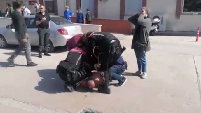 Hastaneden güçlükle dışarı çıkarılan baba oğul, polislerin yanı sıra görüntü alan basın mensuplarını da saldırdı. Baba oğul polisler tarafından yere yatırılarak kelepçelendi ve sürekli çevresindekilere tehditler yağdırmaya devam etti.