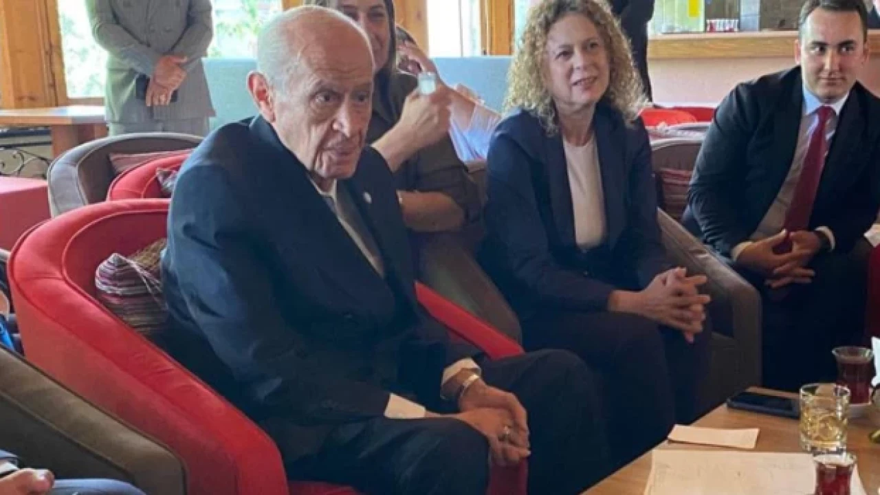 Devlet Bahçeli, Kızılcahamam'da öğle yemeğinde gazetecilerle bir araya geldi.