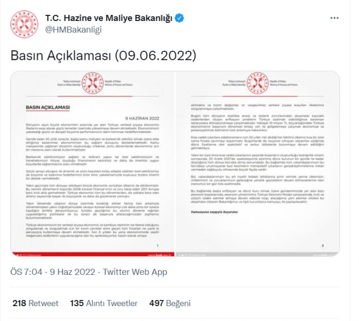 Hazine ve Maliye Bakanlığı yaptığı açıklamada Türkiye ekonomisinin iyiye gittiğini öne sürerek bu akşamdan itibaren bazı adımların paylaşılacağını duyurdu.