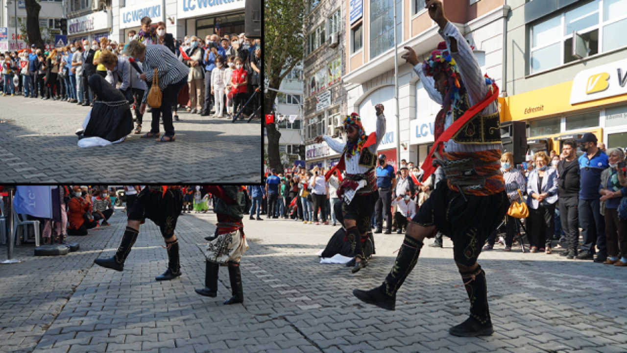 “Bu, Edremit’te 100 yıllık bir gelenek. Daha önce Cumhuriyet Meydanı’nda konuşmanın hemen ardından kara örtünün altında yöresel kıyafetli kadın olurdu ve üzerindeki zincir çıkarılarak kentin kurtarılışı sembolize edilirdi. Ardından da halk oyunları oynanarak kurtuluş kutlanırdı. Bizim siyasetle filan hiçbir ilgimiz yok, olamaz da ancak beyefendinin neden tepki gösterdiğine bir anlam veremiyorum. Demek ki o görmek istediği gibi görüyor ve kara örtü altındaki zincirli kadını, kadın olarak görüyor. Oysa ki o bir kadın değil, Edremit ilçesidir. Bizim anlatmak istediğimiz de budur.”
