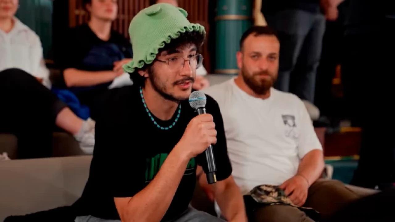 Soru soran isimlerden ön plana en çok çıkan ise kurbağa şapkalı çocuk olmuştu. Hatta o kadar dikkat çekti ki ünlü komedyen Şahan Gökbakar bile o genci tiye almıştı.